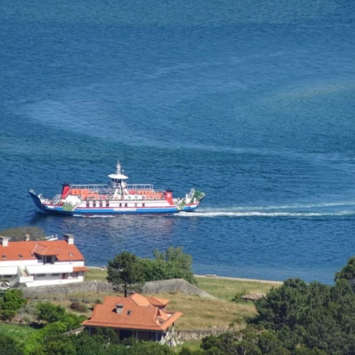 Siga até Caminha, cruze o rio Minho em ferry até Pasaxe (Galiza) e avance até A Guarda. Subida opcional ao Monte Santa Trega (castro galaico-romano e miradouro épico).
